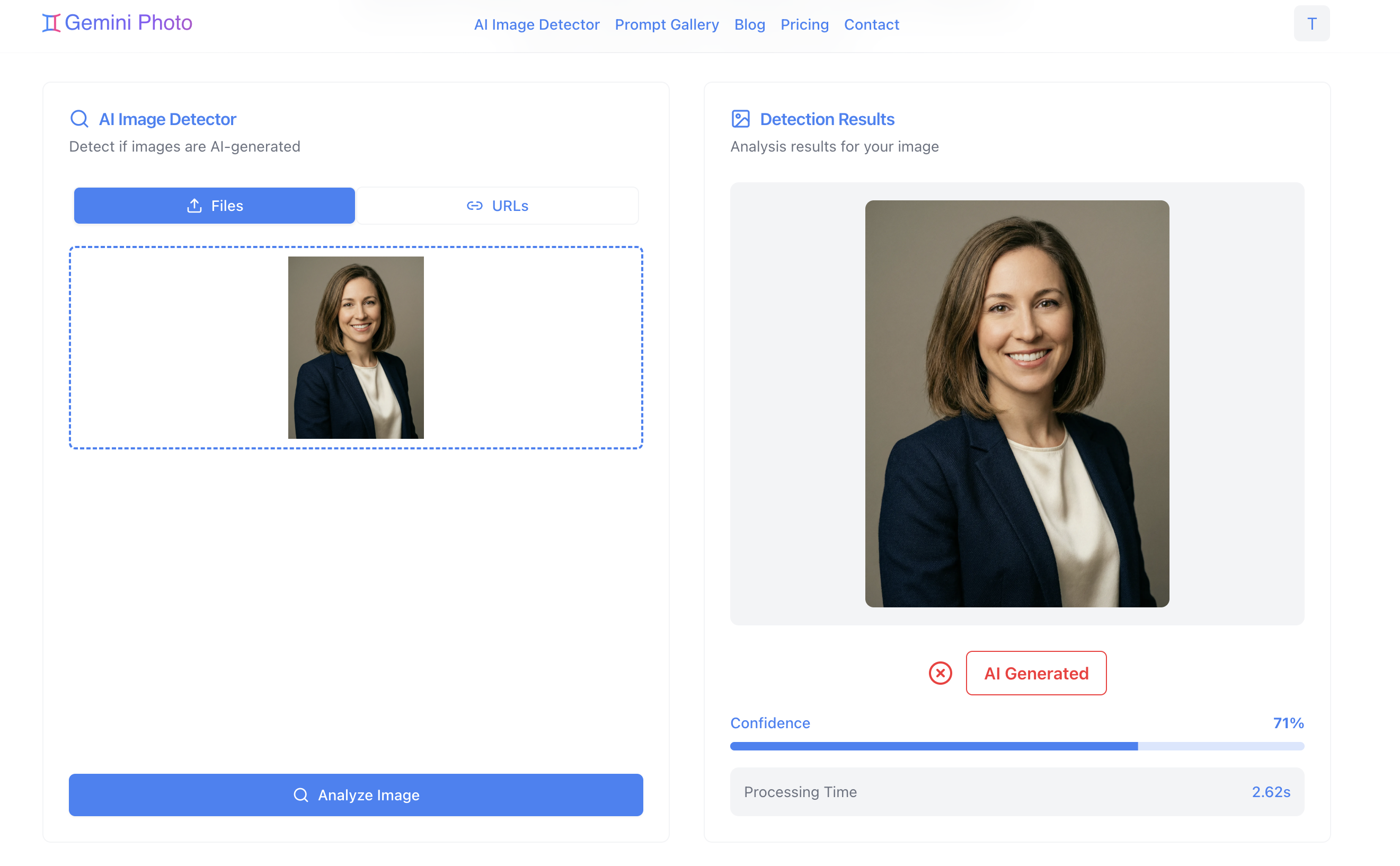 Learn how to use Gemini Photo's AI Image Detector to identify if images are AI-generated or human-created. Get instant, accurate results with confidence scores.
